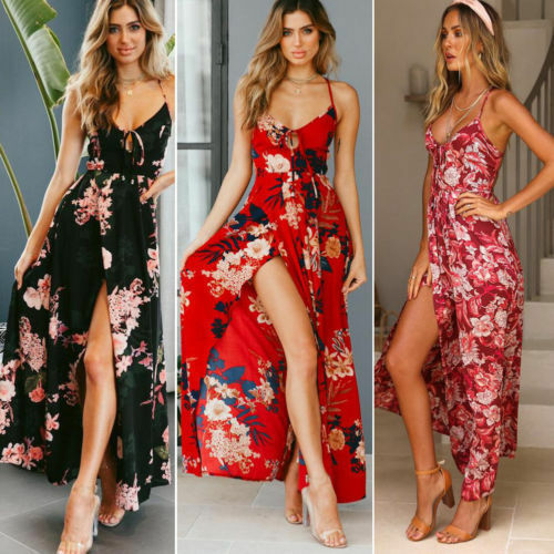 Women Summer Boho Evening Dresses Party Cocktail Long Maxi Dress Beach Sundress Ebay